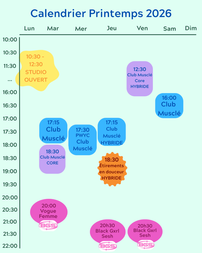 Découvrez nos cours pour enfants et notre camp d'été, ainsi que nos activités pour adultes: musculation, étirements réparateurs et toute une gamme de cours hybrides ! S'inscrire!